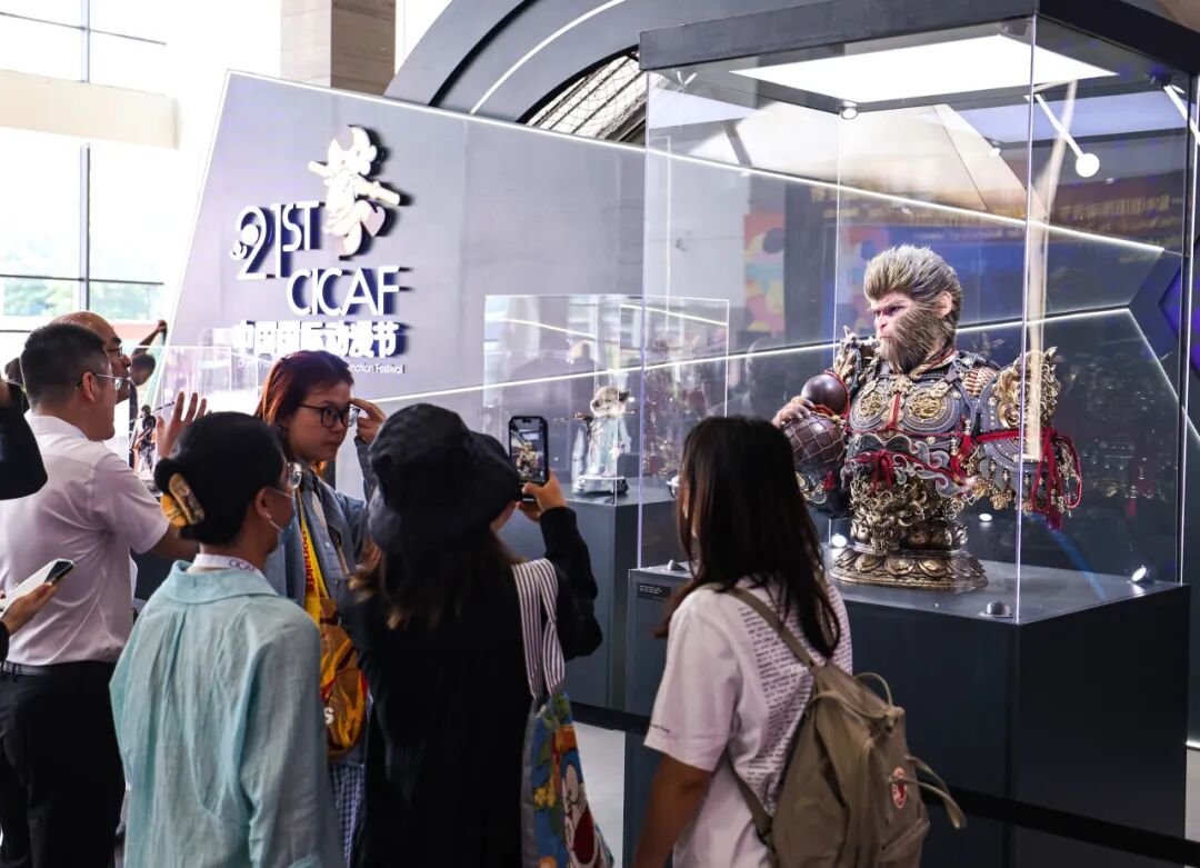 5月29日,观众在第二十一届中国国际动漫节现场参观黑神话悟空主题展陈。江汉摄(新华社)