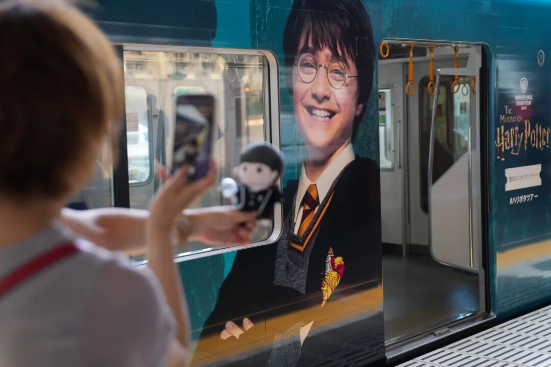 6月16日,游客在日本东京丰岛园车站拍摄哈利波特主题电车。张笑宇摄(新华社)