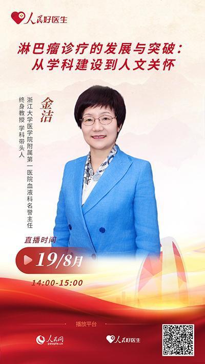 8月19日14:00-15:00,浙江大学医学院附属第一医院血液科名誉主任、终身教授、学科带头人金洁将做客人民好医生客户端直播间,探讨在当下的医疗环境中,应如何找到科技赋能与人文关怀的平衡点,真正实现“德技并重”。敬请关注。